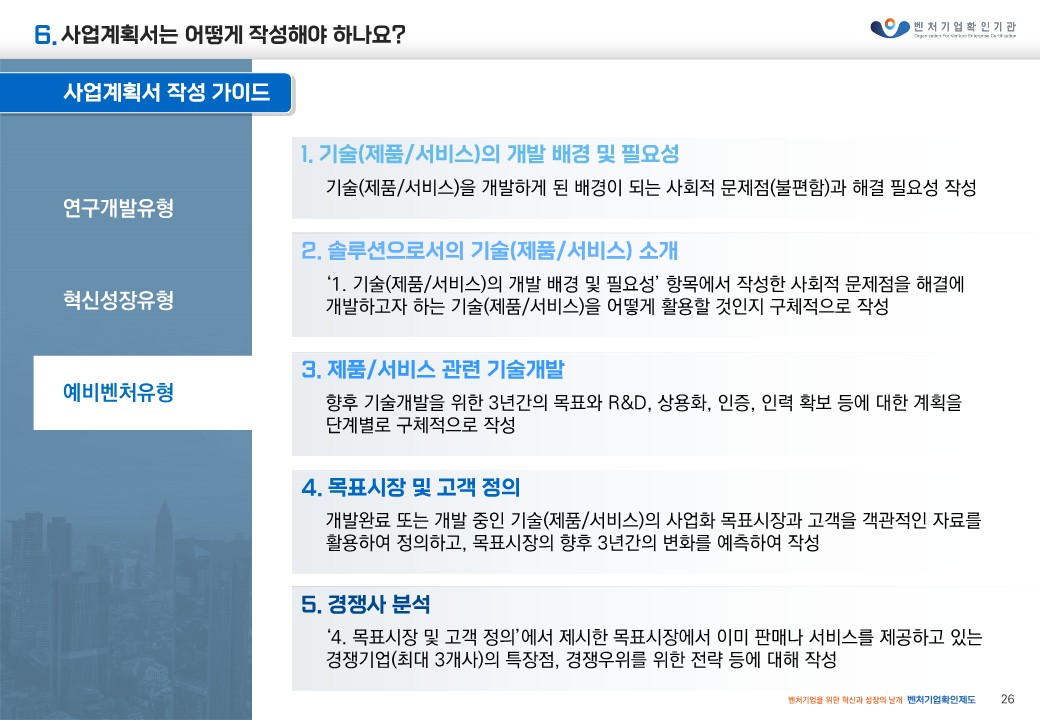 벤처기업으로 확인 받기 위한 기준요건 입니다.