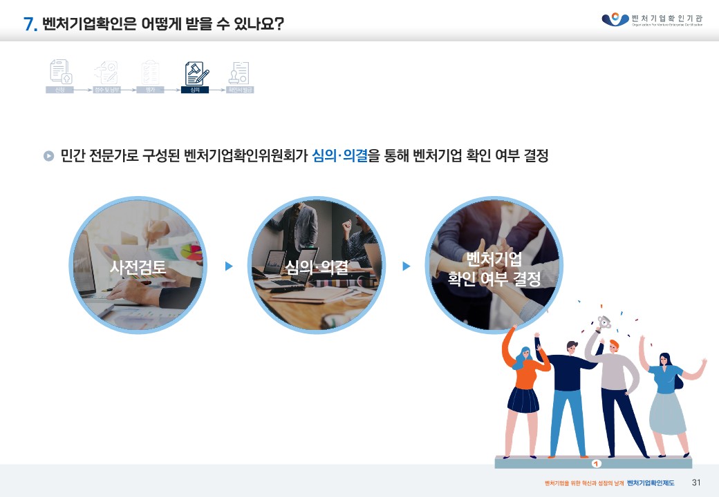 벤처기업확인제도는 공공기관 중심에서 벤처기업확인위원회인 민간 전문가 중심으로 변경이 되었습니다. 유효기간은 기존 2년에서 3년으로 변경이 되었습니다.