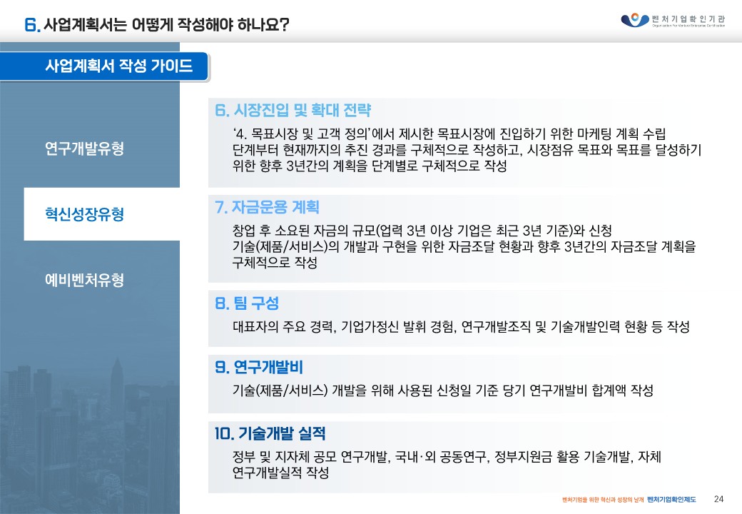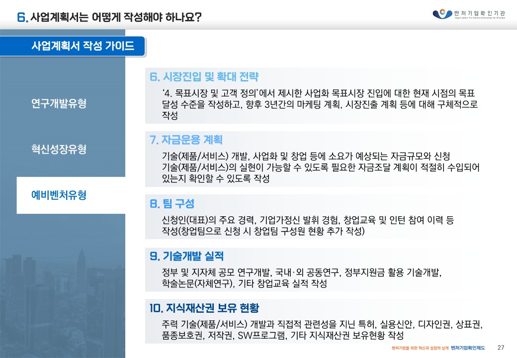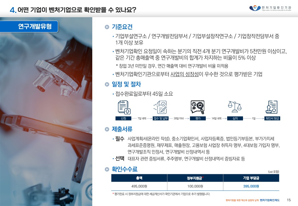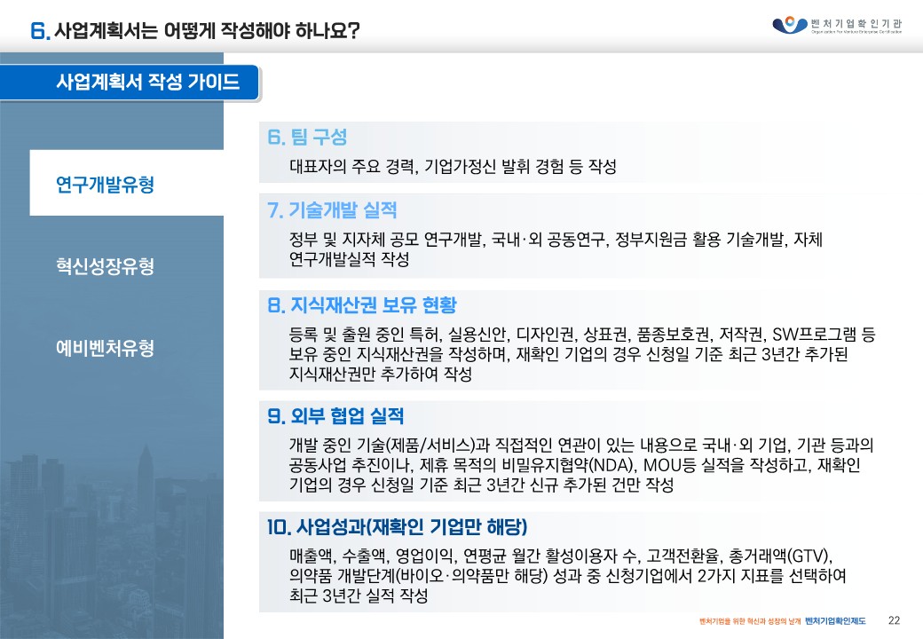 벤처기업으로 확인 받기 위한 기준요건 입니다.